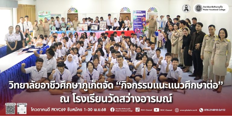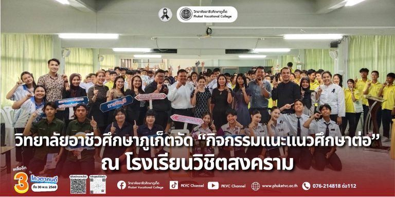 วิทยาลัยอาชีวศึกษาภูเก็ตมุ่งมั่นในการสร้างบุคลากรสายอาชีพที่มีคุณภาพ มีความรู้คู่คุณธรรม พร้อมทั้งพัฒนาศักยภาพผู้เรียนให้ก้าวทันเทคโนโลยี และมีทักษะที่ตอบโจทย์ตลาดแรงงานในยุคดิจิทัล เพื่อให้ทุกคนสามารถนำความรู้ไปใช้สร้างอาชีพ และพัฒนาชุมชนของตนเองให้เติบโตอย่างยั่งยืน