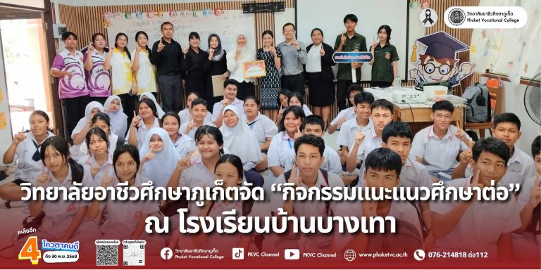 โดยมุ่งเน้นการเรียนรู้แบบบูรณาการ “เรียนรู้จากการปฏิบัติจริง” (Learning by Doing) เพื่อสร้างผู้เรียนให้มี ทักษะอาชีพที่เข้มแข็ง จิตสำนึกคุณธรรม และความภาคภูมิใจในความเป็นคนภูเก็ต