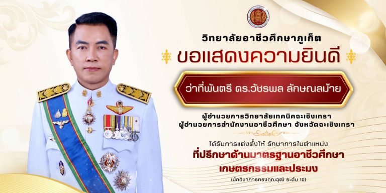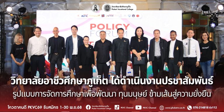ในนามของวิทยาลัยอาชีวศึกษาภูเก็ต ขอสัญญาว่าจะมุ่งมั่นพัฒนาการศึกษาอาชีวะ ให้ก้าวไกลต่อไป เพื่อประโยชน์ของนักศึกษา และสังคมโดยรวม
