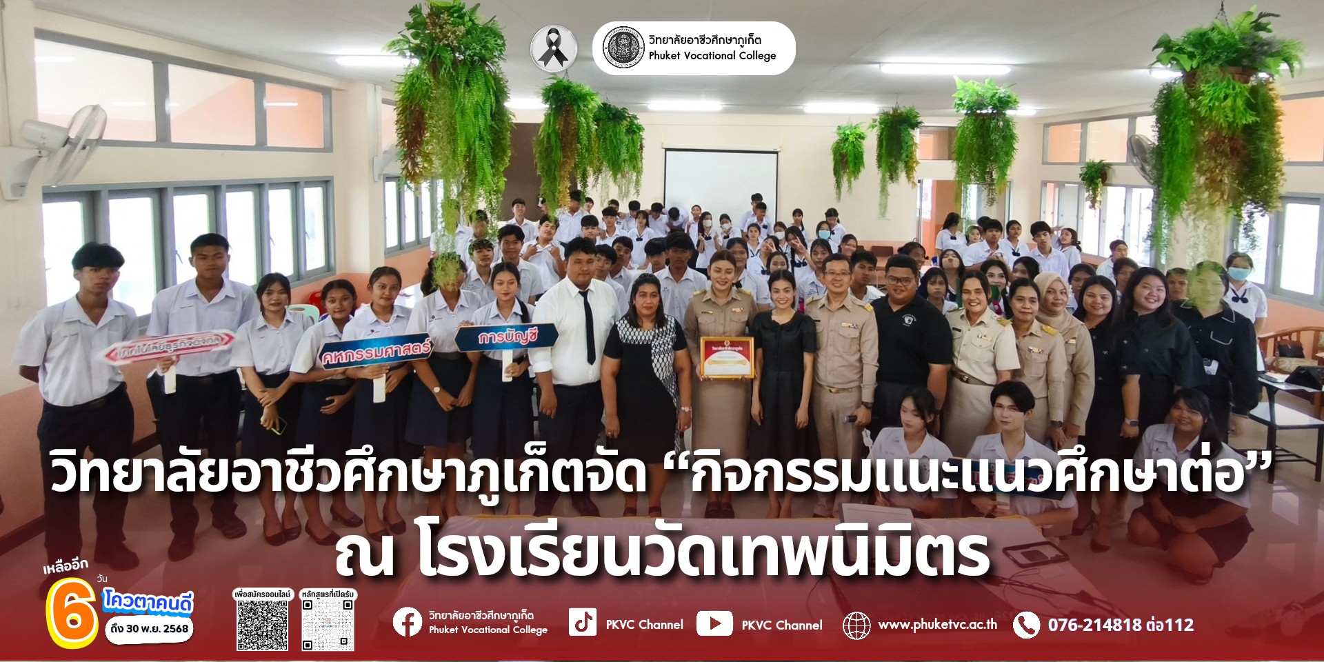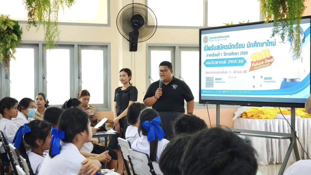 วันจันทร์ที่ 24 พฤศจิกายน 2568 วิทยาลัยอาชีวศึกษาภูเก็ตจัด “กิจกรรมแนะแนวศึกษาต่อ” ณ โรงเรียนวัดเทพนิมิตร