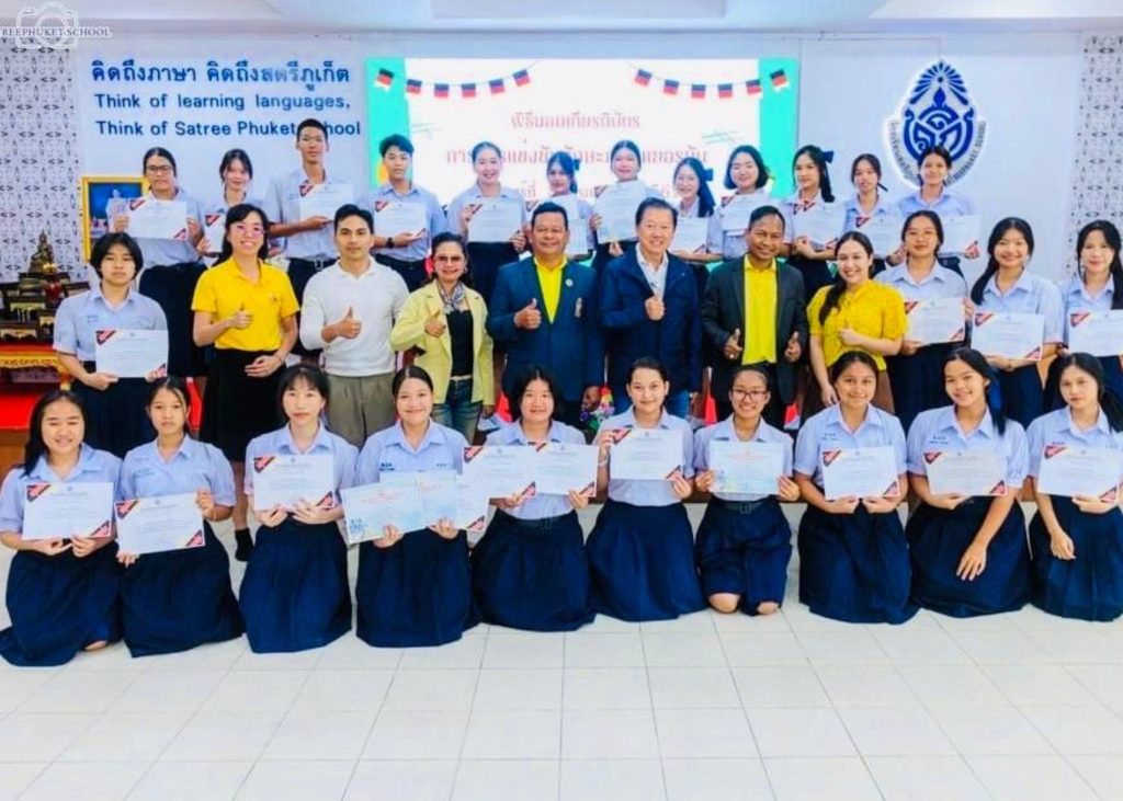 วันจันทร์ที่ 8 กรกฎาคม 2567 ดร.วิทยา เกตุชู ผู้อำนวยการวิทยาลัยอาชีวศึกษาภูเก็ตเป็นวิทยากรสร้างแรงบันดาลใจ พร้อมทั้งเล่าประสบการณ์ในโอกาสศึกษาดูงานประเทศเยอรมัน ให้ผู้เรียนเอกภาษาเยอรมัน ระดับ ม.6 และมอบเกียรติบัตรให้กับผู้ได้รับรางวัลจากการแข่งขันทักษะภาษาเยอรมัน ณ โรงเรียนสตรีภูเก็ต