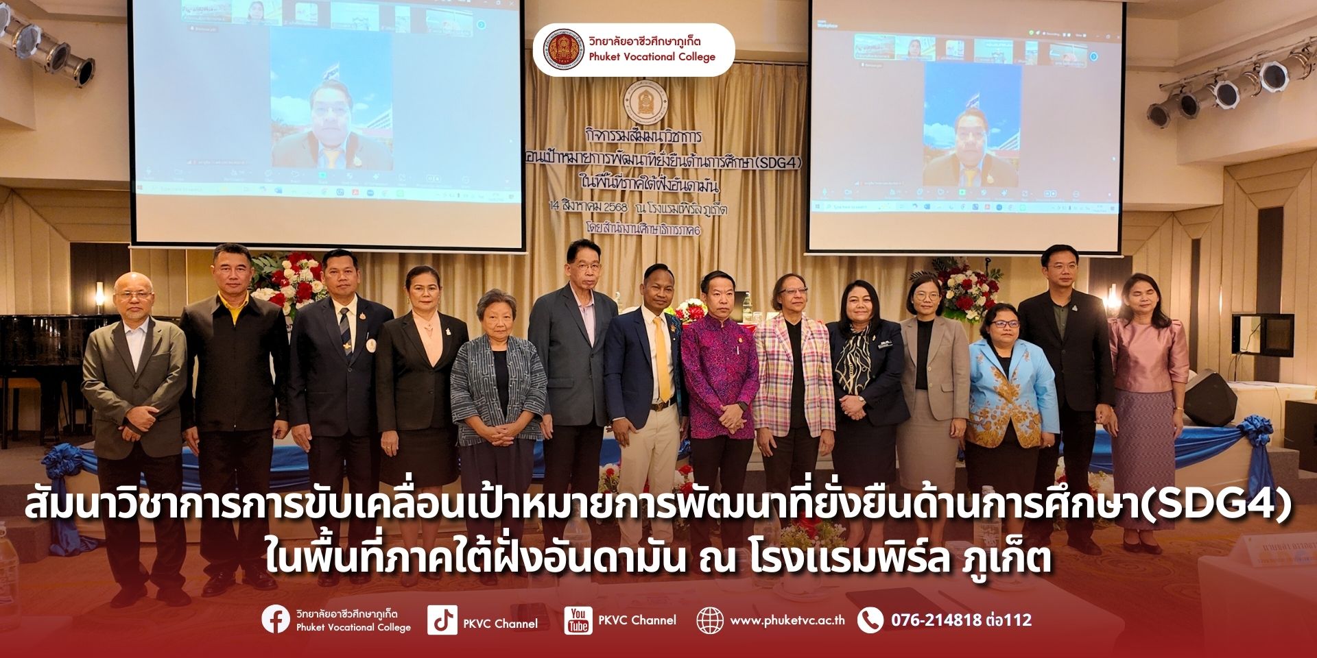 วันที่ 14 สิงหาคม 2568 ดร. วิทยาเกตุชู ผู้อำนวยการเชี่ยวชาญ วิทยาลัยอาชีวศึกษาภูเก็ต ได้รับเกียรติเข้าร่วมเป็นวิทยากร “สัมมนาวิชาการ การขับเคลื่อนเป้าหมายการพัฒนาที่ยั่งยืนด้านการศึกษา (SDG4) ในพื้นที่ภาคใต้ฝั่งอันดามัน” ณ โรงแรมเพิร์ล จังหวัดภูเก็ต