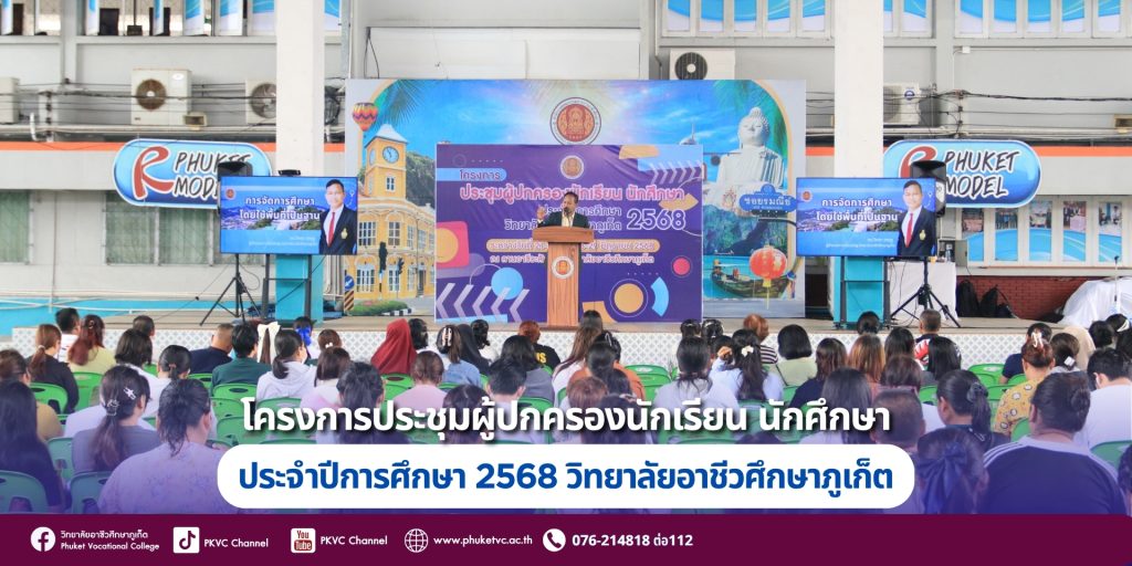 วันที่ 21 มิถุนายน 2568 วิทยาลัยอาชีวศึกษาภูเก็ต จัดโครงการประชุมผู้ปกครอง ประจำปีการศึกษา 2568 เพื่อร่วมกันรับฟังแนวทางการจัดการศึกษา และวางแผนเส้นทางความสำเร็จให้กับบุตรหลานของเราไปด้วยกัน ณ ลานอาชีวะสัมพันธ์ วิทยาลัยอาชีวศึกษาภูเก็ต กำลังใจและความร่วมมือจากท่าน คือพลังสำคัญในการขับเคลื่อนและพัฒนาการศึกษาเพื่ออนาคตที่ดีที่สุดของบุตรหลานทุกคน