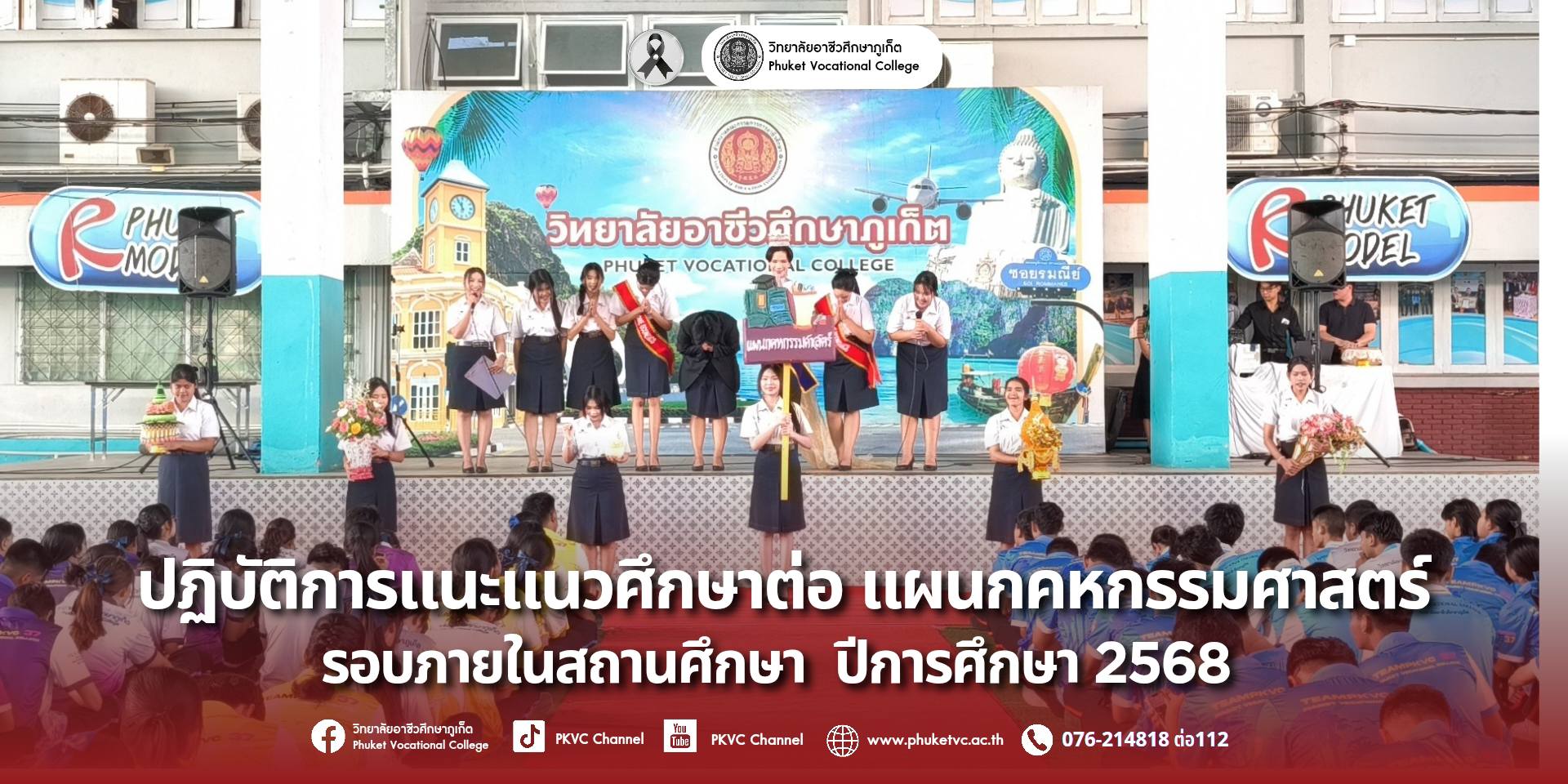 วันพฤหัสบดีที่ 11 ธันวาคม 2568 วิทยาลัยอาชีวศึกษาภูเก็ต จัดปฏิบัติการแนะแนวศึกษาต่อ “แผนกคหกรรมศาสตร์” รอบภายในสถานศึกษา ปีการศึกษา 2568