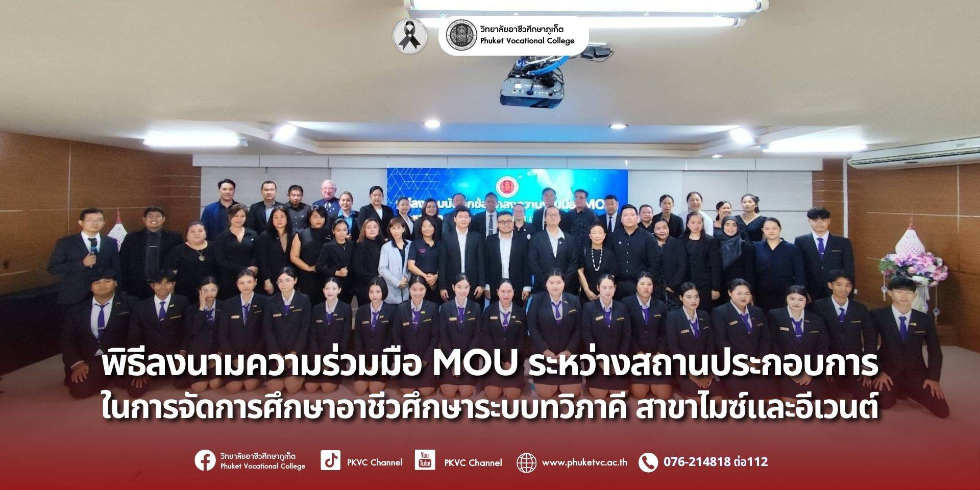 วันพฤหัสบดีที่ 11 ธันวาคม 2568 พิธีลงนามความร่วมมือ MOU ในโครงการขยายและยกระดับการจัดการอาชีวศึกษาระบบทวิภาคีคุณภาพสูง หลักสูตรอุตสาหกรรมท่องเที่ยว สาขาไมซ์และอีเวนต์