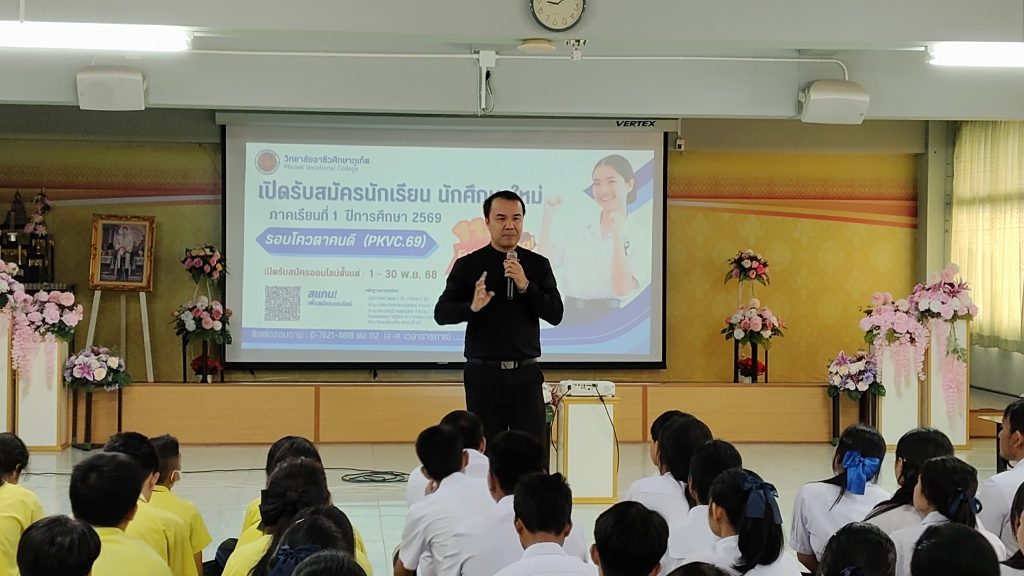 วันพฤหัสบดีที่ 27 พฤศจิกายน 2568 วิทยาลัยอาชีวศึกษาภูเก็ตจัด “กิจกรรมแนะแนวศึกษาต่อ” ณ โรงเรียนวิชิตสงคราม