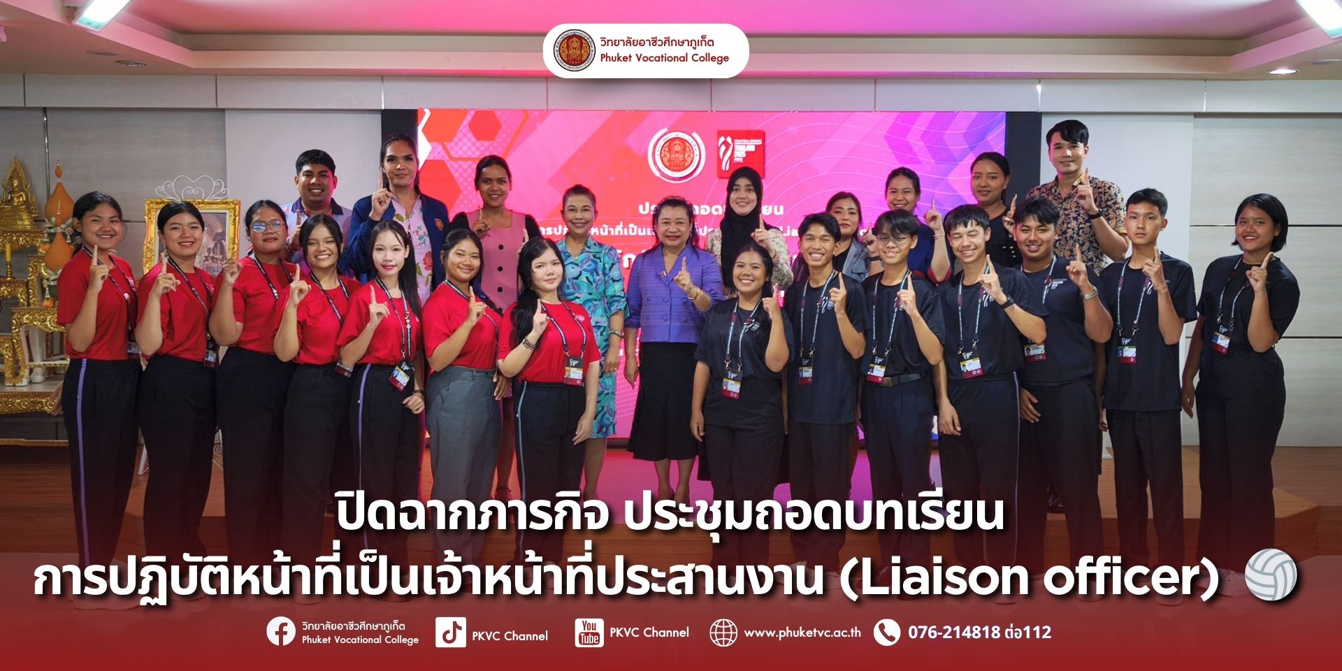 วันพฤหัสบดีที่ 4 กันยายน 2568 วิทยาลัยอาชีวศึกษาภูเก็ต จัดประชุมถอดบทเรียนการทำหน้าที่เจ้าหน้าที่ประสานงาน (Liaison Officer) ให้กับทีมนักกีฬาวอลเลย์บอลต่างชาติ ในการแข่งขัน FIVB Volleyball Women’s World Championship 2025 ณ ห้องประชุมราไวย์ อาคาร R-Phuket Hotel