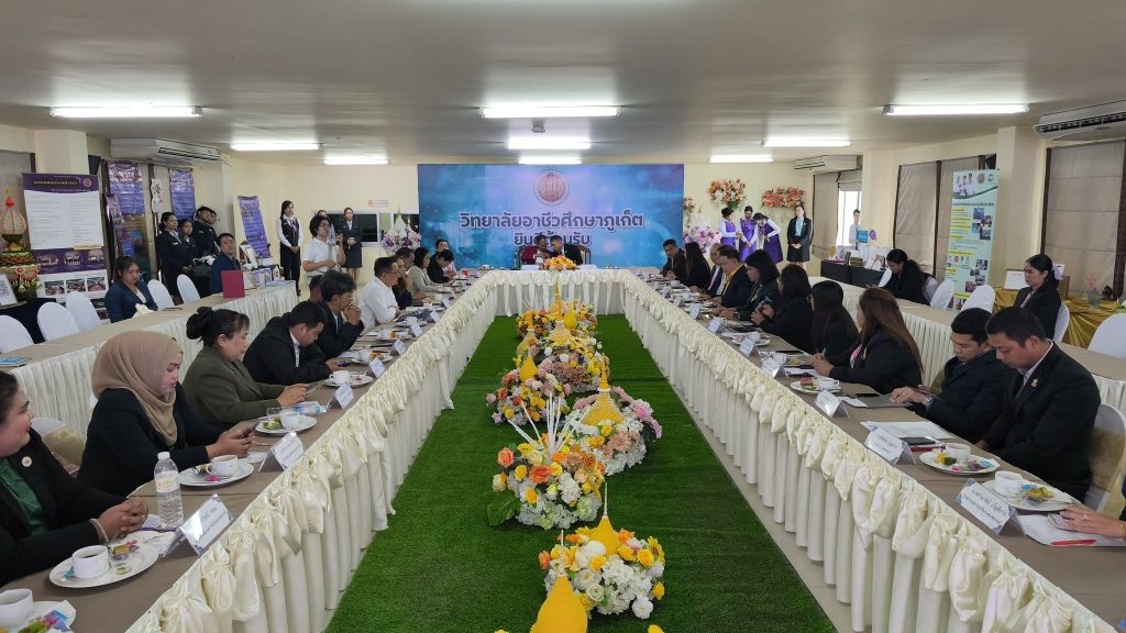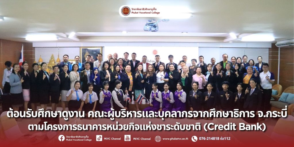 วันพุธที่ 1 ตุลาคม 2568 วิทยาลัยอาชีวศึกษาภูเก็ต ขอต้อนรับคณะศึกษาดูงาน คณะผู้บริหารและบุคลากรจากศึกษาธิการ จังหวัดกระบี่ เข้าศึกษาดูงาน รูปแบบการจัดการเรียนการสอนตามโครงการธนาคารหน่วยกิจแห่งชาติ (Credit Bank) ณ ห้องประชุมราไวย์ ข่าวประชาสัมพันธ์