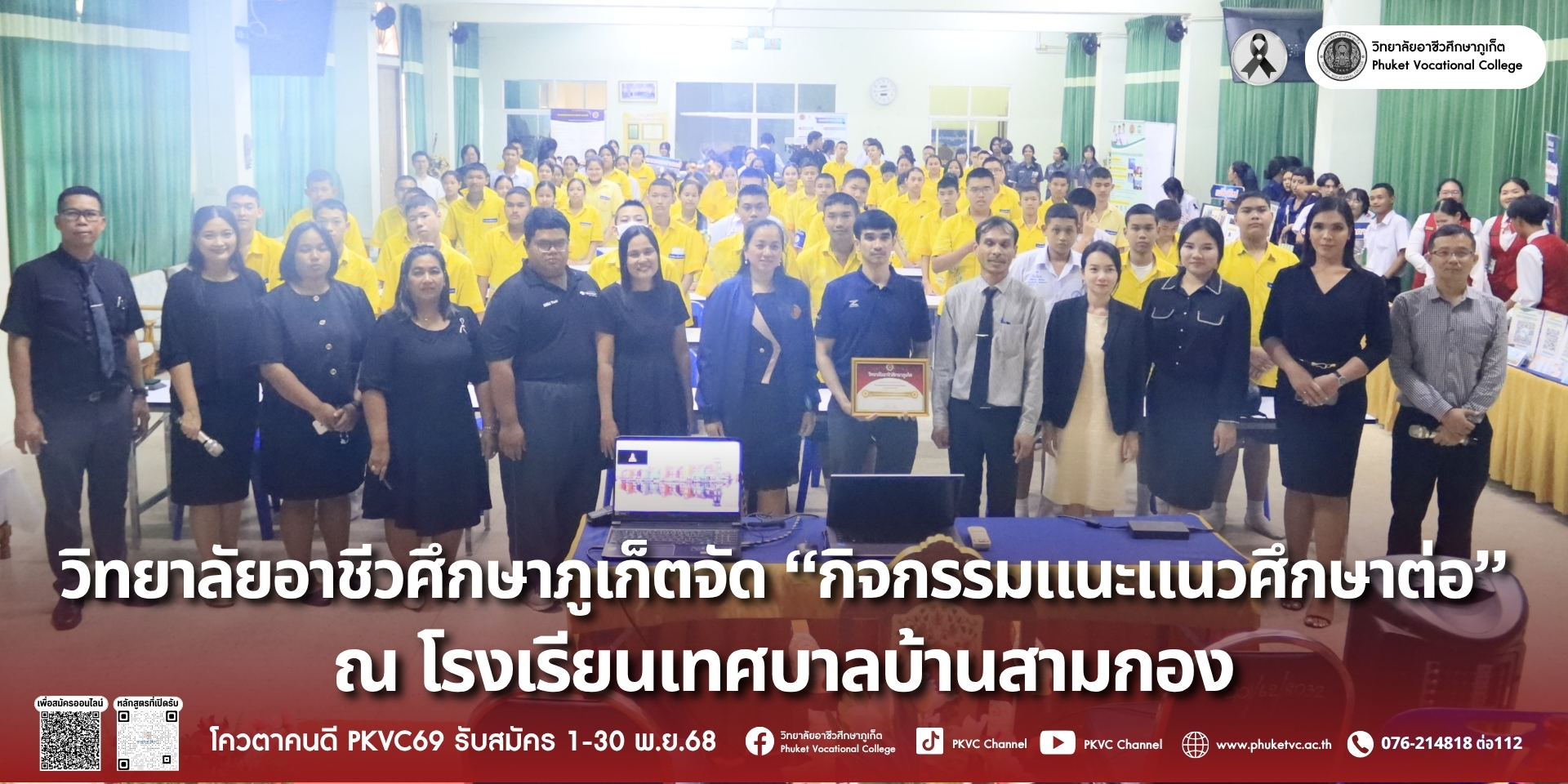วันศุกร์ที่ 14 พฤศจิกายน 2568 วิทยาลัยอาชีวศึกษาภูเก็ตได้จัด “กิจกรรมแนะแนวศึกษาต่อ” ณ โรงเรียนเทศบาลบ้านสามกอง