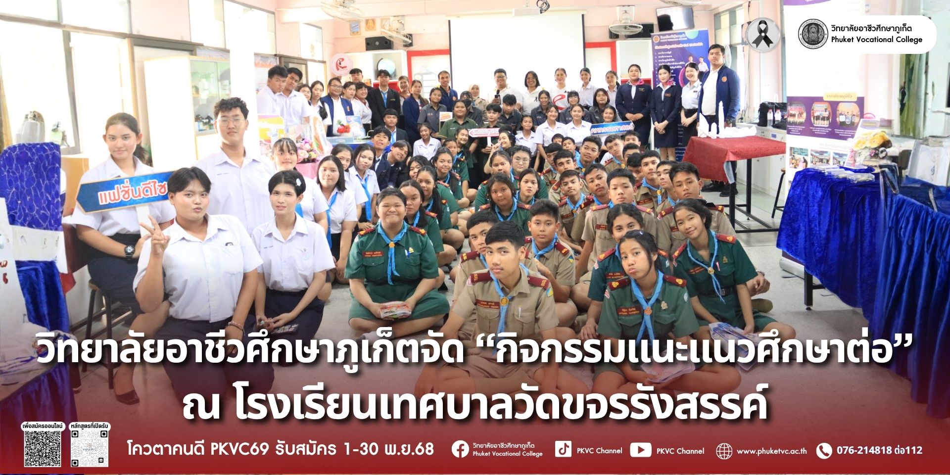 วันอังคารที่ 11 พฤศจิกายน 2568 วิทยาลัยอาชีวศึกษาภูเก็ตได้จัด “กิจกรรมแนะแนวศึกษาต่อ” ณ โรงเรียนเทศบาลวัดขจรรังสรรค์