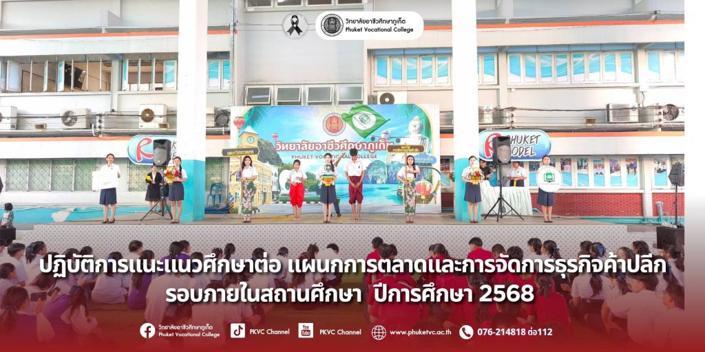 วันอังคารที่ 16 ธันวาคม 2568 วิทยาลัยอาชีวศึกษาภูเก็ต จัดปฏิบัติการแนะแนวศึกษาต่อ “แผนกการตลาดและการจัดการธุรกิจค้าปลีก” รอบภายในสถานศึกษา ปีการศึกษา 2568