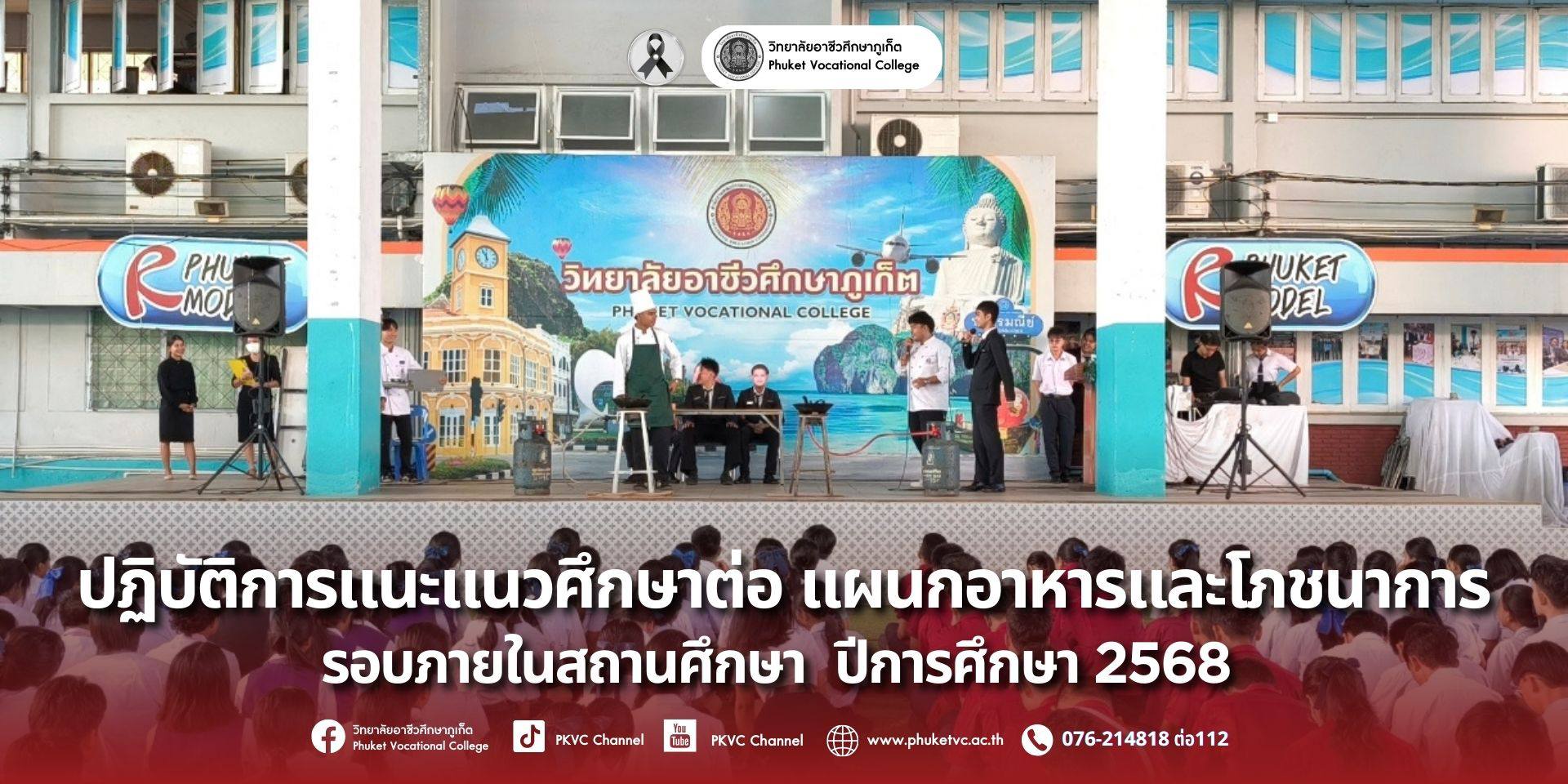 วันอังคารที่ 9 ธันวาคม 2568 วิทยาลัยอาชีวศึกษาภูเก็ต จัดกิจกรรมแนะแนวศึกษาต่อ “แผนกอาหารและโภชนาการ” ภายในสถานศึกษา ปีการศึกษา 2568