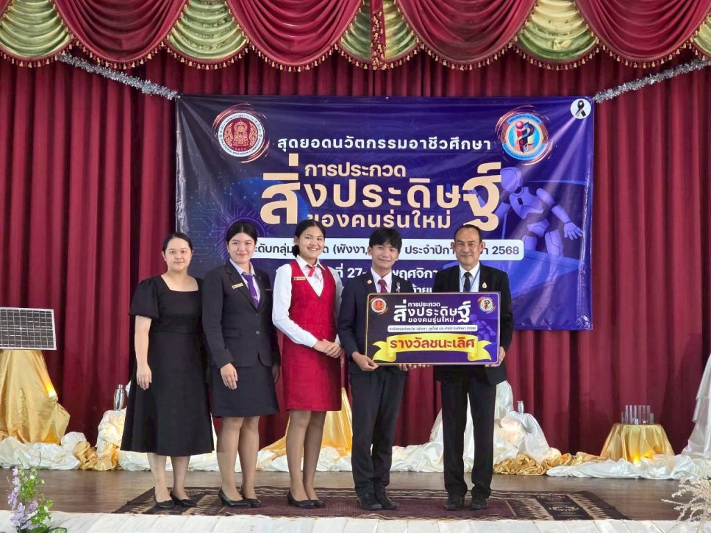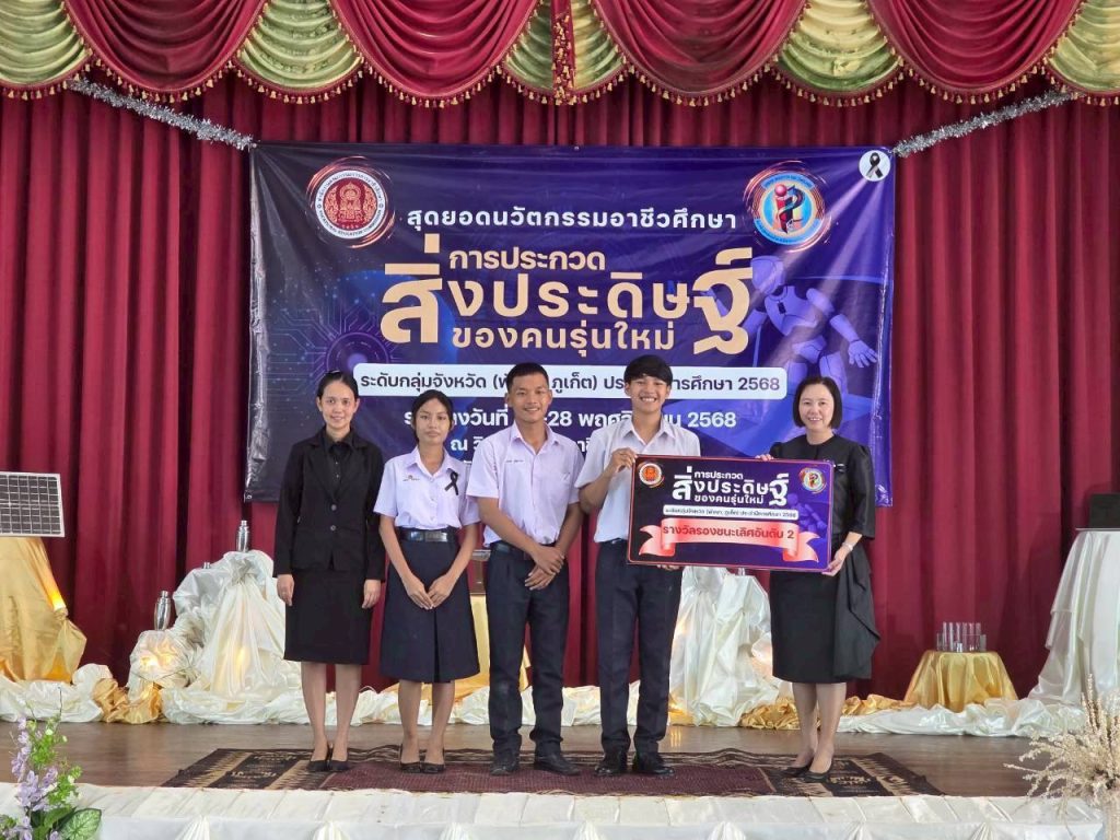 วิทยาลัยอาชีวศึกษาภูเก็ต ขอแสดงความยินดีกับนักเรียนนักประดิษฐ์และคณะครูทุกท่าน ที่สร้างผลงานโดดเด่นในการประกวด “สุดยอดนวัตกรรมการศึกษา การประกวดสิ่งประดิษฐ์ของคนรุ่นใหม่” ระดับกลุ่มจังหวัดพังงาและภูเก็ต ณ วิทยาลัยการอาชีพท้ายเหมือง เมื่อวันที่ 28 พฤศจิกายน 2568