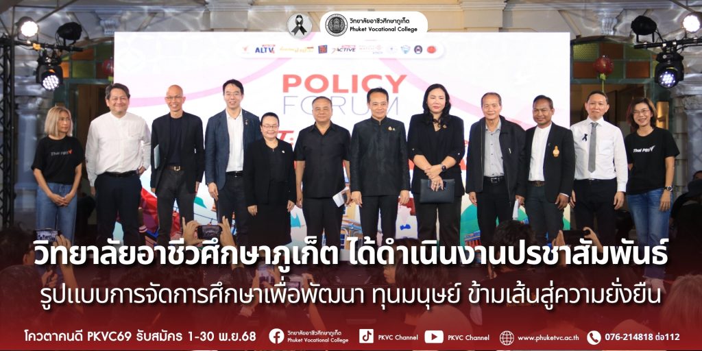 วันศุกร์ที่ 7 พฤศจิกายน 2568 ดร. วิทยา เกตุชู ผู้อำนวยการวิทยาลัยอาชีวศึกษาภูเก็ต ได้นำเสนอ “รูปแบบการจัดการศึกษาเพื่อพัฒนา ทุนมนุษย์ ข้ามเส้นสู่ความยั่งยืน “