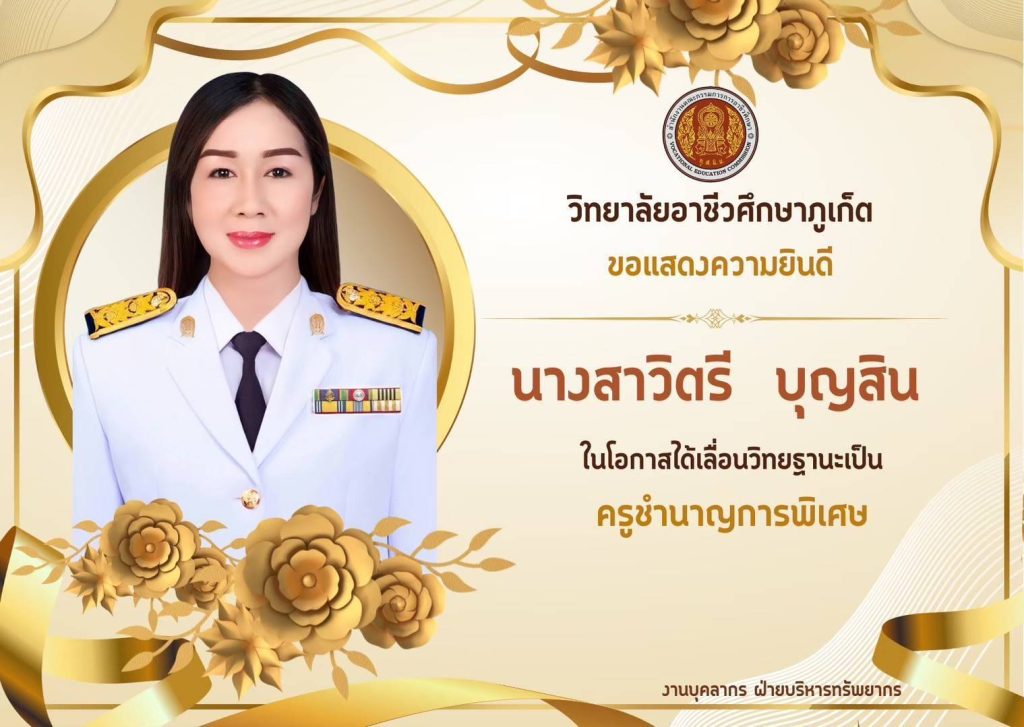 ขอแสดงความยินดีอย่างสูง ครูสาวิตรี บุญสิน ในโอกาสที่ท่านได้รับการเลื่อนวิทยฐานะเป็น “ครูชำนาญการพิเศษ”