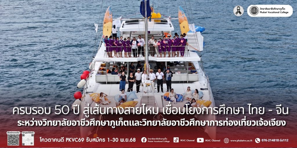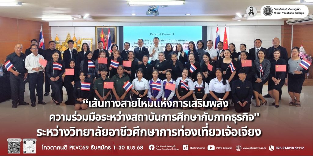 วันพุธที่ 19 พฤศจิกายน 2568 วิทยาลัยอาชีวศึกษาภูเก็ต จัดโครงการ “เส้นทางสายไหมแห่งการเสริมพลังความร่วมมือระหว่างสถาบันการศึกษากับภาคธุรกิจ”
