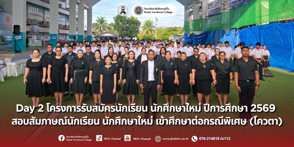 วันเสาร์ที่ 13 ธันวาคม 2568. วิทยาลัยอาชีวศึกษาภูเก็ต โครงการรับสมัครนักเรียน นักศึกษาใหม่ ประจำปีการศึกษา 2569 สอบสัมภาษณ์นักเรียน นักศึกษาใหม่ เข้าศึกษาต่อกรณีพิเศษ (โควตา)