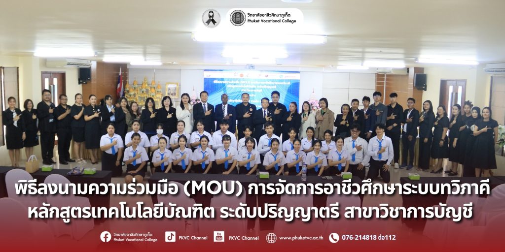 วันพฤหัสบดีที่ 22 มกราคม 2569 วิทยาลัยอาชีวศึกษาภูเก็ต จัดพิธีลงนามความร่วมมือ (MOU) การจัดการอาชีวศึกษาระบบทวิภาคี