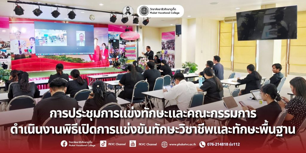วันพฤหัสบดีที่ 4 ธันวาคม 2568 วิทยาลัยอาชีวศึกษาภูเก็ต ประชุมเตรียมความพร้อม การแข่งทักษะและคณะกรรมการ ดำเนินงานพิธีเปิดการแข่งขันทักษะวิชาชีพและทักษะพื้นฐาน