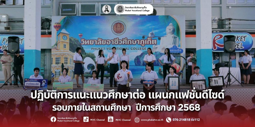 วันจันทร์ที่ 8 ธันวาคม 2568 วิทยาลัยอาชีวศึกษาภูเก็ต จัดกิจกรรมแนะแนวศึกษาต่อ “แผนกแฟชั่นดีไซด์” ภายในสถานศึกษา ปีการศึกษา 2568