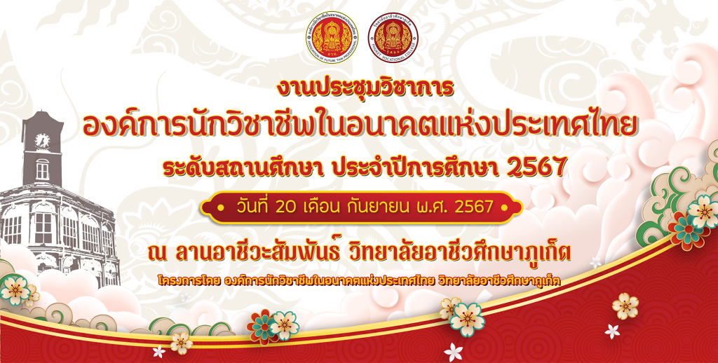 งานประชุมวิชาการ องค์การนักวิชาชีพในอนาคตแห่งประเทศไทย ระดับสถานศึกษา ประจำปีการศึกษา 2567 วันที่ 20 กันยายน 2567 ณ ลานอาชีวะสัมพันธ์ วิทยาลัยอาชีวศึกษาภูเก็ต