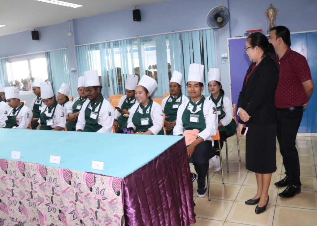 วันพุธที่ 11 กันยายน 2567 ดร.ปิยะมาศ ชำนาญ รองผู้อำนวยการ ฝ่ายวิชาการ พบปะและพูดคุยให้กำลังใจ นักศึกษาระดับชั้น ปวส.1 แผนกวิชาอาหารและโภชนาการ ที่เข้าทดสอบในโครงการประเมินมาตรฐานคุณวุฒิวิชาชีพ สาขาวิชาชีพการท่องเที่ยว การโรงแรม ภัตตาคารและร้านอาหาร สาขาผู้ประกอบอาหาร อาชีพผู้ประกอบอาหารไทย คุณวุฒิวิชาชีพระดับ 4 ระหว่างวันที่ 11-13 กันยายน 2567 หน้าห้องครัวมาตรฐาน และห้องปฏิบัติการอาหาร 6