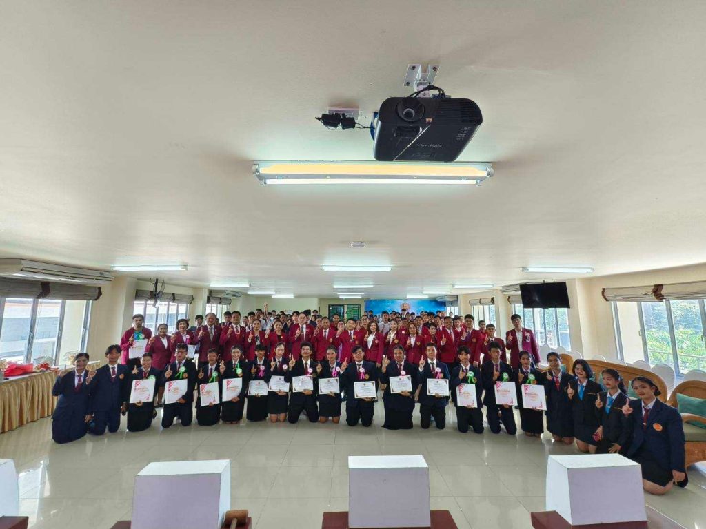 วันศุกร์ที่ 8 พฤศจิกายน 2567 นางสาวอรทัย สุวรรณมณี รองผู้อำนวยการฝ่ายแผนงานและความร่วมมือ นางสาวกุลริศา ตรีโชติ รองผู้อำนวยการฝ่ายบริหารทรัพยากร นายเทพบัณฑิต สิงคีบับพา รองผู้อำนวยการฝ่ายพัฒนากิจการนักเรียน นักศึกษา นางสาวทิพย์วิมล ทิพย์รักษา หัวหน้างานความร่วมมือ และคณะทำงาน ร่วมพิธีรับเกียรติบัตรหลังจากเสร็จสิ้นการฝึกงาน ของผู้เข้าอบรบในโครงการ ASEAN-ROK รุ่นที่ 3 ณ ห้องประชุม WeGarden โรงแรม WeKata Luxury