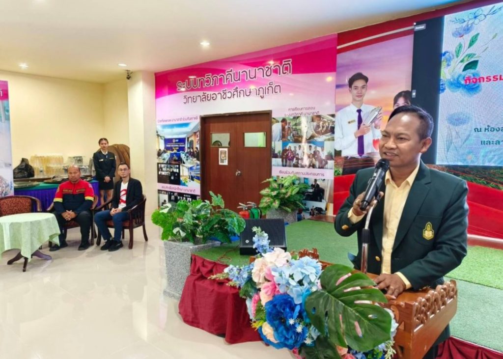 วันที่ 29 สิงหาคม 2567 ดร.วิทยา เกตชู ผู้อำนวยการวิทยาลัยอาชีวศึกษาภูเก็ต ร่วมพิธีเปิดโครงการ พัฒนาบุคลากรเพื่อรองรับการจัดการอาชีวศึกษาระบบทวิภาคีคุณภาพสูง ภายใต้กิจกรรม อบรมครูฝึกสถานประกอบการ หลักสูตร 30 ชั่วโมง ประจำปีการศึกษา 2567 ณ ห้องประชุมราไวย์ วิทยาลัยอาชีวศึกษาภูเก็ต