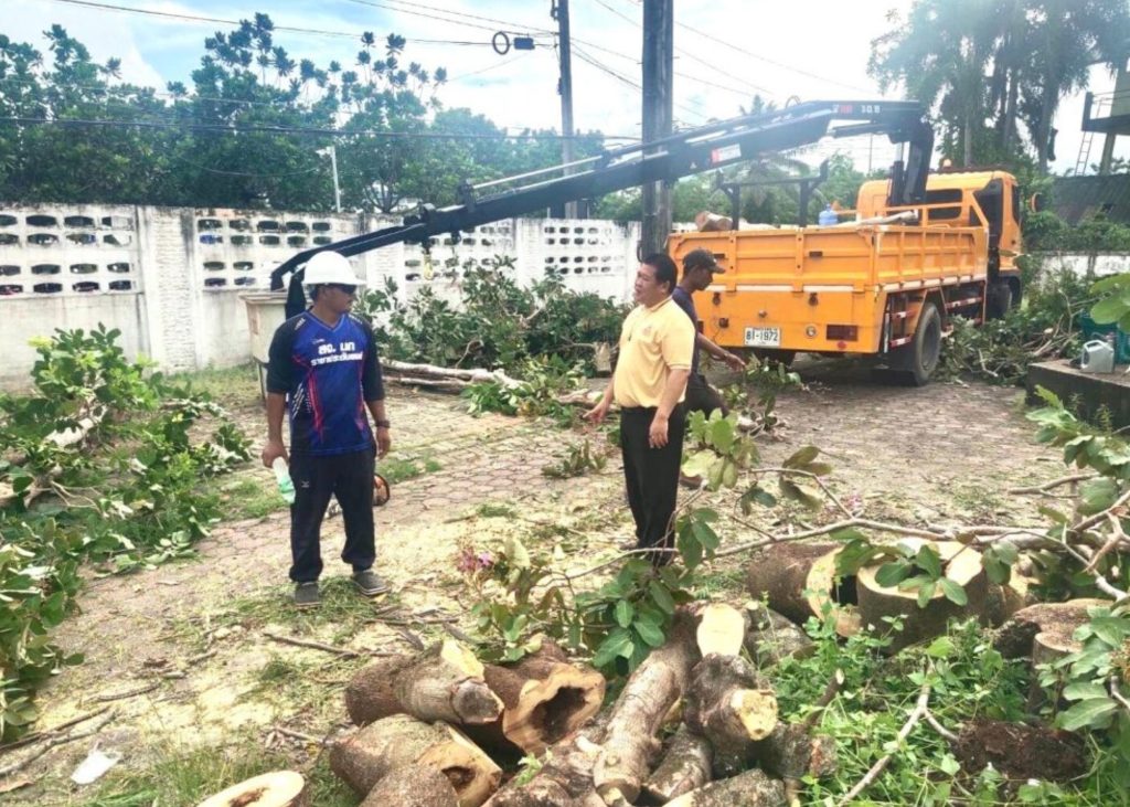 วันจันทร์ที่ 26 สิงหาคม 2567 นายเชิดชัย เตรียมเชิดติวงศ์ หัวหน้างานอาคารสถานที่ นักการชาย เข้าดำเนินการร่วมกับเจ้าหน้าที่องค์การบริหารส่วนจังภูเก็ต (อบจ.ภูเก็ต) ตัดแต่งต้นไม้ที่เสียหายจากพายุเพื่อให้เกิดความปลอดภัย