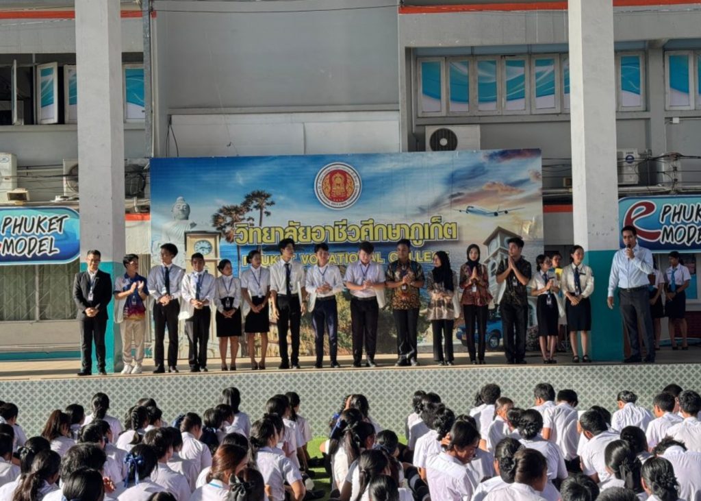 วันศุกร์ที่ 30 สิงหาคม 2567 นักศึกษาโครงการ ASEAN-ROK TVET Mobility Programme รุ่นที่ 3 พบปะ และแนะนำตัวเพื่อทำความรู้จักกับบุคลากรครู และนักเรียน นักศึกษาของวิทยาลัยอาชีวศึกษาภูเก็ต