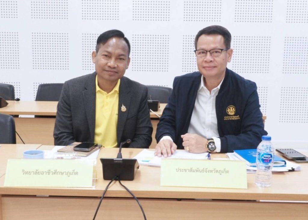 วันพฤหัสบดีที่ 25 กรกฎาคม 2567 ดร. วิทยา เกตุชู ผู้อำนวยการ วิทยาลัยอาชีวศึกษาภูเก็ต ร่วมการประชุมคณะอนุกรรมการประชาสัมพันธ์แห่งชาติระดับจังหวัด จังหวัดภูเก็ต ครั้งที่ 2/2567 ณ ห้องประชุมจันทร์พันวา มุขหลัง ศาลากลางจังหวัดภูเก็ต