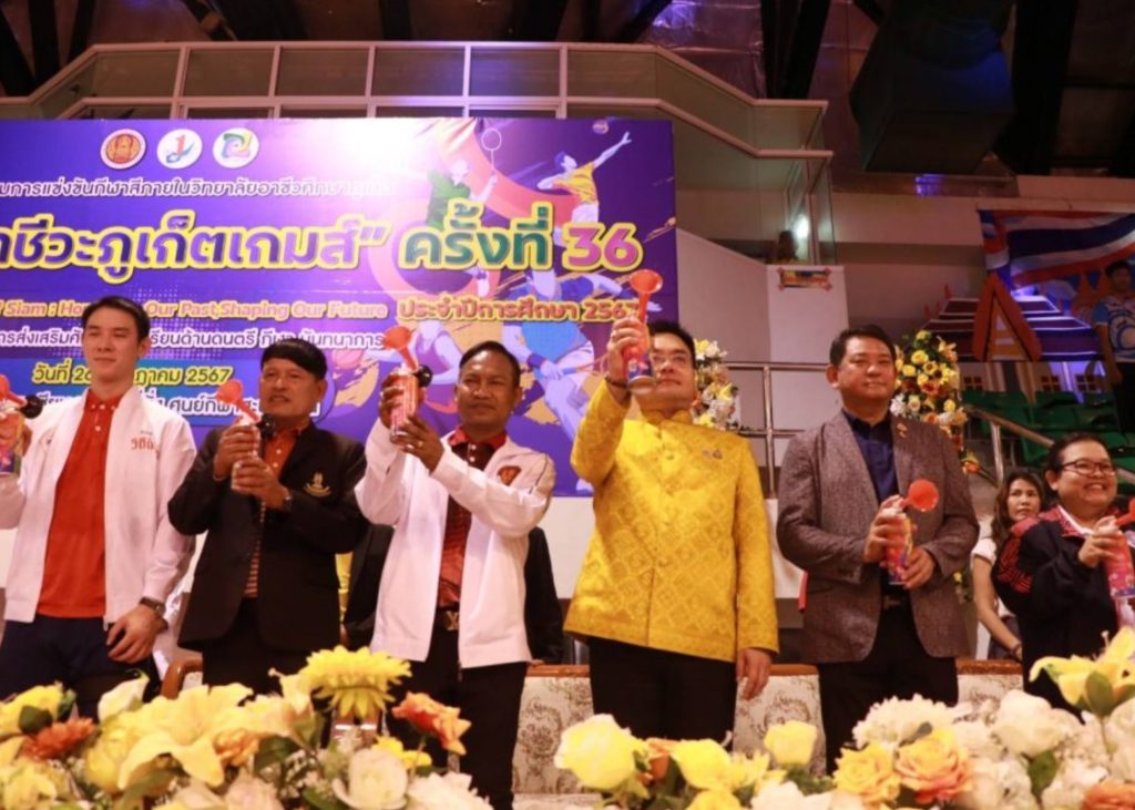 วันศุกร์ที่ 26 กรกฎาคม 2567 วิทยาลัยอาชีวศึกษาภูเก็ต จัดมหกรรมกีฬาอาชีวะภูเก็ตเกมส์ครั้งที่ 36 โดยได้รับเกียรติจาก นายนรศักดิ์ สุขสมบูรณ์ รองผู้ว่าราชการจังหวัดภูเก็ต ให้เกียรติเป็นประธานในพิธี และในโอกาสนี้ นายธนูศักดิ์ พึ่งเดช กงสุล ประเทศฮังการี มอบโต๊ะกีฬาเทคบอลเพื่อเป็นการสนับสนุนการเล่นกีฬาของนักเรียนนักศึกษา วิทยาลัยอาชีวศึกษาภูเก็ต ณ โรงยิมเนเซียม 4,000 ที่นั่ง ศูนย์กีฬาสะพานหินจังหวัดภูเก็ต