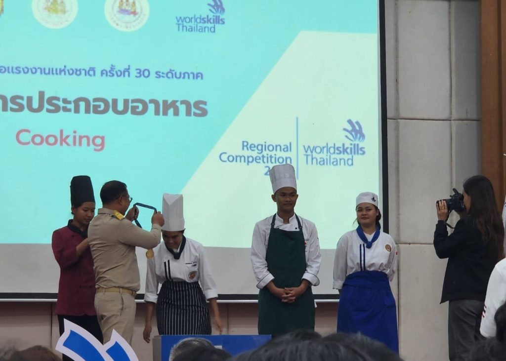 วันศุกร์ที่ 12 กรกฎาคม 2567 แผนกวิชาอาหารและโภชนาการ ส่งนักศึกษาแผนกวิชาอาหารและโภชนาการ จำนวน 3 คน และผู้ช่วย 2 คน เข้าร่วมการแข่งขันฝีมือแรงงานแห่งชาติ ครั้งที่ 30 สาขาการประกอบอาหาร ระหว่างวันที่ 9 – 12 กรกฎาคม 2567 ณ สถาบันพัฒนาแรงงาน 12 สงขลาผลการแข่งขันได้รับรางวัลเหรียญทองแดง