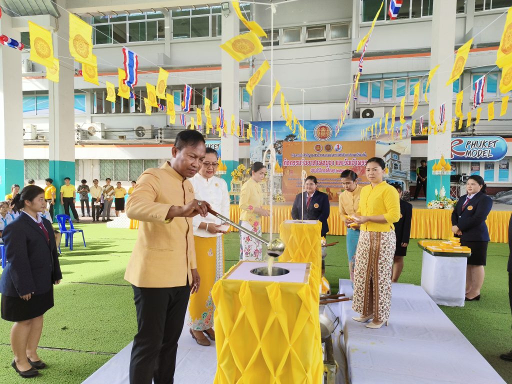วันพุธที่ 10 กรกฎาคม 2567 ดร. วิทยา เกตุชู ผู้อำนวยการวิทยาลัยอาชีวศึกษาภูเก็ต คณะผู้บริหาร ครู บุคลากร และนักเรียน นักศึกษา ร่วมพิธีหล่อเทียนพรรษา ประจำปี 2567 ตามโครงการวันสำคัญของชาติ ศาสนา พระมหากษัตริย์ และประเพณีท้องถิ่น ณ ลานอาชีวะสัมพันธ์ วิทยาลัยอาชีวศึกษาภูเก็ต