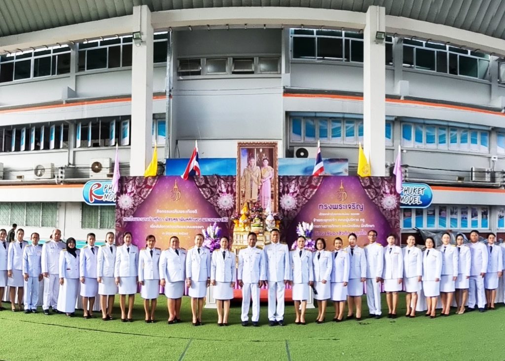 วันพฤหัสบดีที่ 30 พฤษภาคม 2567 ดร.วิทยา เกตุชู ผู้อำนวยการวิทยาลัยอาชีวศึกษาภูเก็ต พร้อมด้วยคณะผู้บริหาร ครู บุคลากรทางการศึกษา และนักเรียน นักศึกษา ร่วมกิจกรรมเฉลิมพระเกียรติ สมเด็จพระนางเจ้าสุทิดา พัชรสุธาพิมลลักษณ พระบรมราชินี เนื่องในโอกาสวันเฉลิมพระชนมพรรษา ณ ลานอาชีวะสัมพันธ์ วิทยาลัยอาชีวศึกษาภูเก็ต