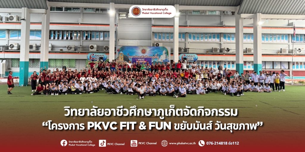 วิทยาลัยอาชีวศึกษาภูเก็ต จัดโครงการ “FIT & FUN ขยับมันส์ วันสุขภาพ” ทุกวันพุธ เวลา 17.30 น. เป็นต้นไป ณ ลานอาชีวะสัมพันธ์