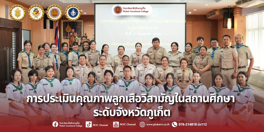 วันที่ 3 กรกฎาคม 2568 กองลูกเสือวิสามัญ วิทยาลัยอาชีวศึกษาภูเก็ต ได้เข้ารับการประเมินคุณภาพในสถานศึกษา ระดับจังหวัด ประจำปี 2568 โดยได้รับเกียรติจากคณะกรรมการสำนักงานอาชีวศึกษาจังหวัดภูเก็ต เข้าตรวจเยี่ยมและประเมิน ณ ห้องประชุมไตรตรังขอขอบคุณคณะกรรมการจากสำนักงานอาชีวศึกษาจังหวัดภูเก็ต ที่ให้เกียรติเข้าประเมินและให้คำแนะนำอันเป็นประโยชน์ต่อไป