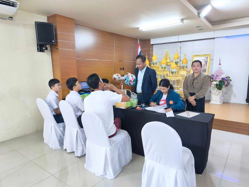 ผู้บริหาร พร้อมด้วยคณะครู และแผนกวิชาการโรงแรม ร่วมต้อนรับนายวาริช หะยีหะเต็ง เนื่องในโอกาสได้รับการบรรจุและแต่งตั้งข้าราชการครู ตำแหน่งครูผู้ช่วย แผนกวิชาการโรงแรม