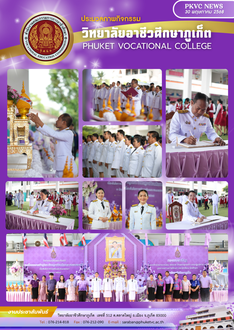 ในนามของวิทยาลัยอาชีวศึกษาภูเก็ต ขอสัญญาว่าจะมุ่งมั่นพัฒนาการศึกษาอาชีวะ ให้ก้าวไกลต่อไป เพื่อประโยชน์ของนักศึกษา และสังคมโดยรวม