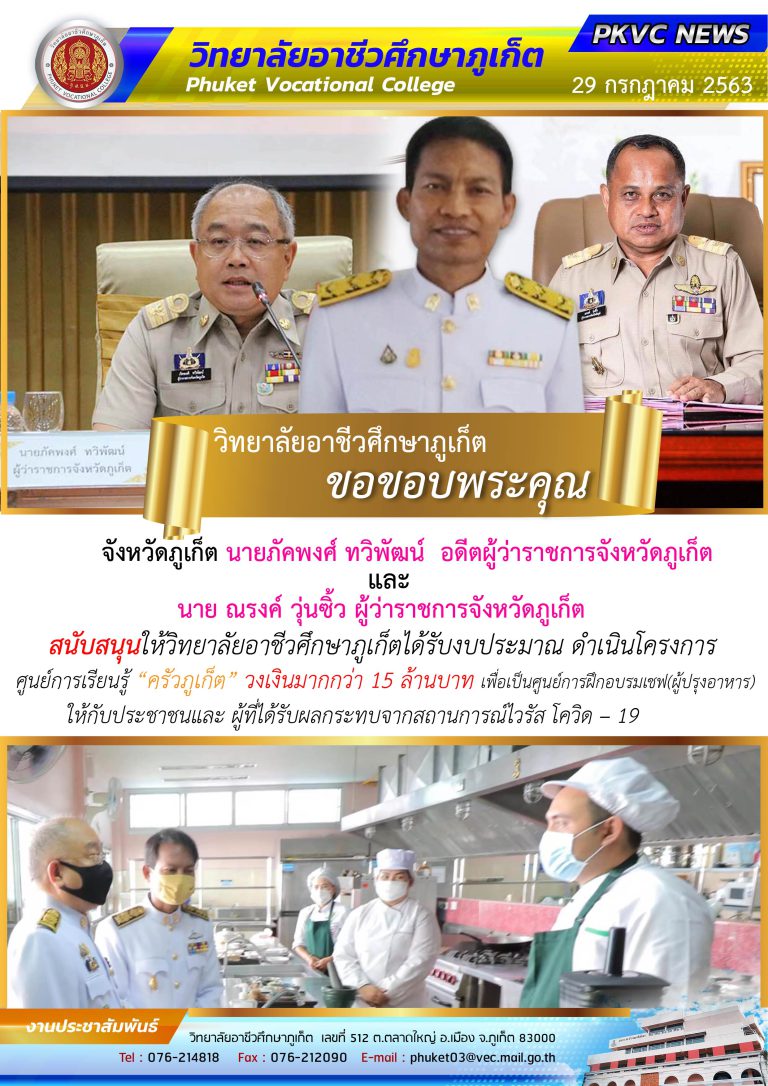 ในนามของวิทยาลัยอาชีวศึกษาภูเก็ต ขอสัญญาว่าจะมุ่งมั่นพัฒนาการศึกษาอาชีวะ ให้ก้าวไกลต่อไป เพื่อประโยชน์ของนักศึกษา และสังคมโดยรวม